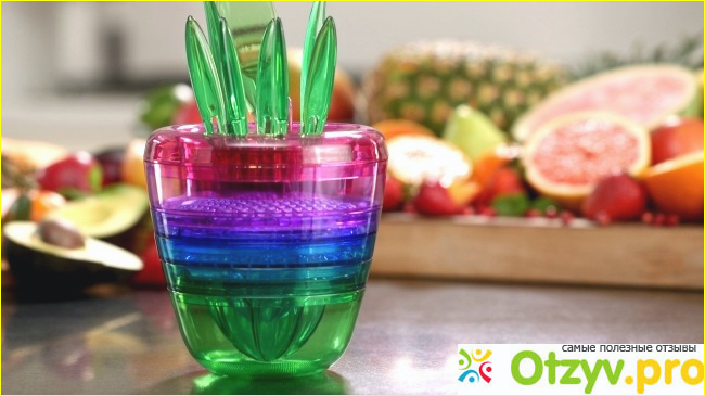 В чем же уникальность данного товара и чем он меня впечатлил?На первый взгляд сразу и не поймешь, что это за устройство , выглядит довольно просто-несколько мисочек, сложеных друг в друга по размеру, но на самом -то деле-это совсем не простые мисочки. Витаминная фабрика Delimano Brava состоит из множества инструментов, которые очень удобно применять в процессе обработки свежих фруктов. Например, каждый знает, что покупая пакетированный сок мы не получаем никаких витаминов, в витаминной фабрике есть целых две соковыжималки для цитрусовых и удобная чаша, куда будет стекать готовый сок. Соковыжималка побольше-для крупных фруктов(например , грейпфрут) и небольшая-для маленьких, как мандарин. Теперь я каждое утро начинаю со свежего натурального сока, который заряжает меня энергией на весь день! Тем более, что приготовить вкуснейший фреш с витаминной фабрикой так просто. Но это еще не все, кроме приготовления сока, данный прибор умеет готовить множество других блюд из фруктов. При помощи специальной терки мы можем натереть твердые фрукты на специальную терку, которая так же , как и соковыжималка фиксируется к чаше, что делает использование максимально удобным. Я обожаю так готовить свежый морковно-яблочный салат со сметаной. А если в вашем арсенале есть мягкие фрукты, как , например, бананы, можно воспользоваться специальным инструментом и размять мягкие фрукты до состояния пюре. При помощи специальной насадки можно быстро измельчить любые фрукты, напезать их купиками. Мои дети не очень любят яблоки, но когда я их чищу, при помощи удобного ножа, который тоже есть в комплекте и разрезаю специальным прибором для разрезания яблок, мои дети с аппетитом едят яблочные дольки. Еще одна удобная вещь-это специальные фруктовые вилки, которые тоже входят в этот набор, ими так удобно накалывать любые фрукты. Витаминная фабрика Delimano Brava помогает мне на кухне в приготовлении здоровой еды, занемает очень мало места, выглядит красиво и эстетично, а еще , благодаря тому, что она изготовлена из сверхпрочного пластика, ее так легко мыть. Всем, кто следит за своим питанием и самочувствием, советую тоже приобрести этот незаменимый на каждой кухне помощник.
