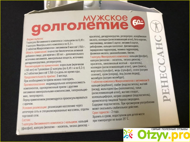 Еще большой плюс, что к витаминам и минералам в комплексе учтены антиоксиданты ресвератрол и ещё один с очень сложным названием для замедления старения организма. И самое главное — эффект есть, появилась бодрость, желание куда-то пойти, двигаться.