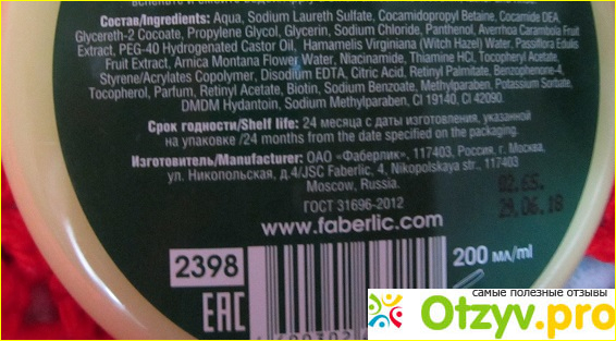 Артикул этого товара для заказа вы можете увидеть на упаковке: 2398. Здесь же обозначен объем флакона в 200 мл.