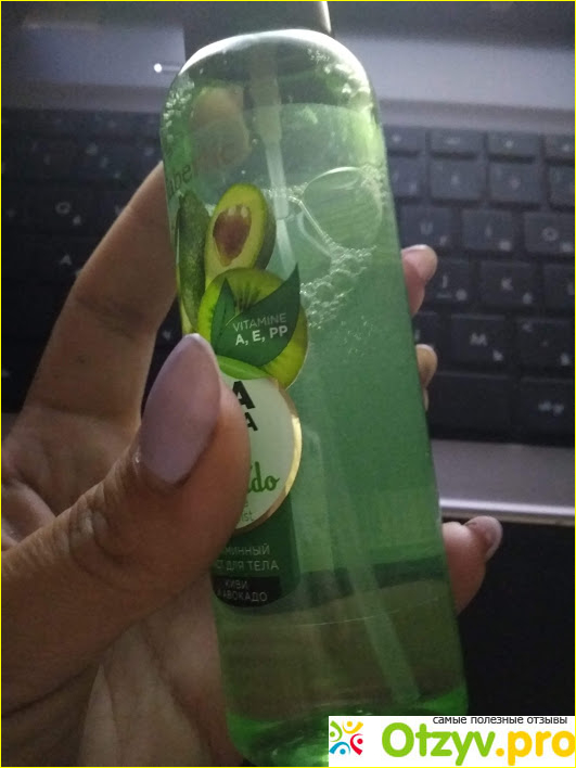 Пахнет киви и авокадо, как и соответствующее название, серия Витамания, которая тоже намекает на витамины в составе продукции. Не знаю, есть ли они там на самом деле? Но я довольна результатом от применения и вам рекомендую в жару!