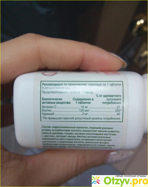 Смотря на состав препарата можно увидеть, что концентрация биотина в соответствии с дневной нормой очень завышена. Это способствует тому, что даже самая сильная проблема с кожей или волосами будет решена.
