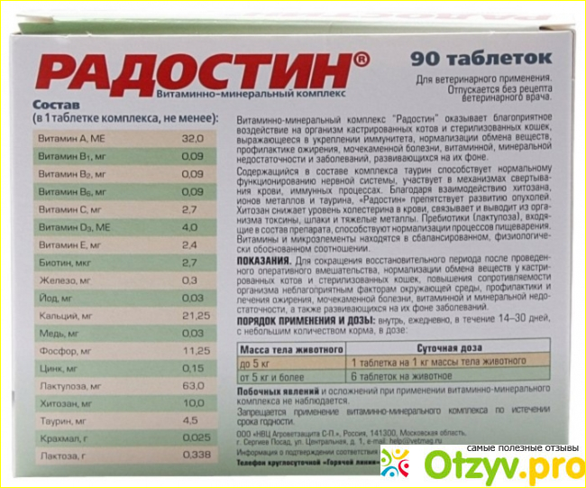 Второй кот в расцвете своих сил, и у него к счастью нет выраженных проблем. Единственный момент, который меня беспокоил - это тусклая от природы шерстка. После курса витаминов она стала более гладкой, приятной на ощупь и даже появился легкий блеск. Я считаю, что даже если вы не видите проблем у питомца, хотя бы пару раз в год нужно давать ему витамины по потребностям. Мои коты сами Радостин не едят, поэтому я просто давала их прямо в пасть по инструкции. С проглатыванием особенных проблем не было. Можно также покрошить таблетки во влажный корм, и они съедятся быстро и с удовольствием. Рекомендую как доступный и качественный препарат.