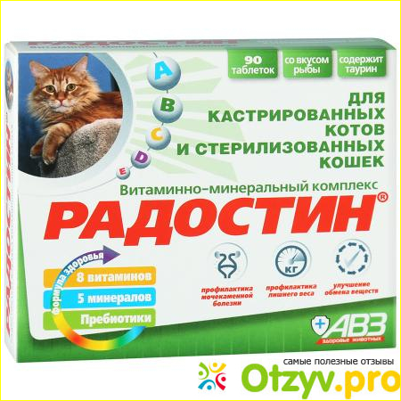 Витаминные комплексы я даю своим животным регулярно. И среди Российских производителей мне очень нравится продукция от АВЗ. Витамины от Радостин для стерилизованных кошек - моя недавняя находка. Они предназначены для профилактики мочекаменной болезни, для борьбы с лишним весом, для улучшения состояния шерсти. Упаковка в 90 штук таблеток обходится в 220 рублей. Комплекс универсален для животных разных возрастов. И подойдет при некоторых особенностях здоровья. Витаминный состав довольно богатый. Рекомендуется животным в процессе выздоровления после болезни, пожилым животным, при недостатке питательных веществ.
