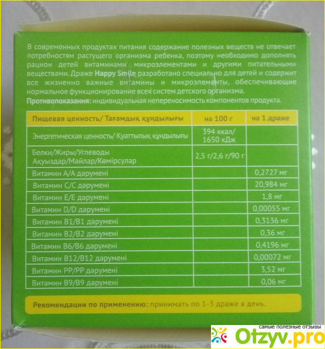 Мультивитаминный комплекс в виде драже содержит в своем составе полный натуральный набор необходимых веществ, с помощью которых укрепляется иммунитет, малыши гораздо реже болеют, а если и заболевают, то течение болезни проходит легче и дети быстрее выздоравливают. Состав драже соответствует рекомендуемой суточной потребности в витаминах, которые выпускаются в виде ягодных и вкусных драже по 0,5 грамм в каждом. Внуки драже едят с удовольствием, а младший постоянно просит еще.