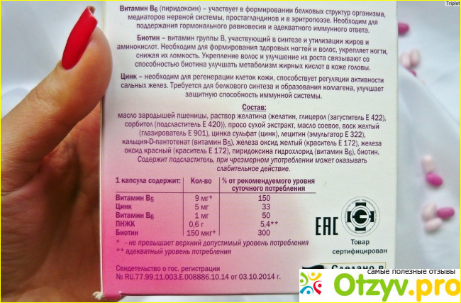 Более того, такого рода витамины помогают укрепить ногтевые пластины, ухаживают за кожей, подпитывают весь организм необходимыми витаминами, минералами и микроэлементами.