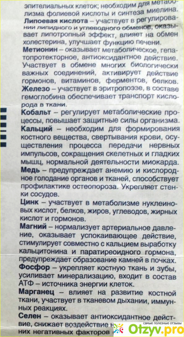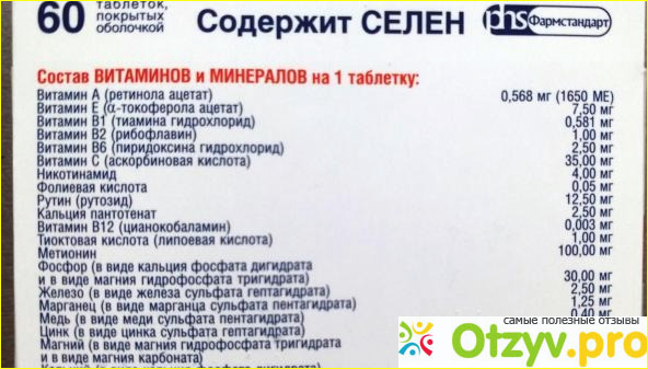 В состав препарата входит двенадцать витаминов, девять микроэлементов и селен.
