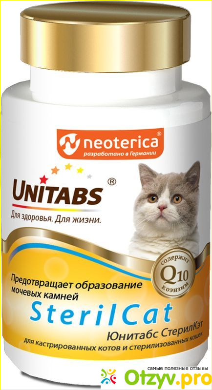 Витамины Unitabs "SterilCat", за упаковку в 120 таблеток я заплатила 250 рублей. Они предназначены для улучшения работы мочевыделительной системы, нормализации обмена веществ, и снижения риска формирования струвитов, мочевых камней. Препарат предполагает дозировку 1 таблетка на 1 кг веса. Таблетки крупные, имеют привлекательный для кошек запах. В сутки требуется принять ровно столько, сколько показано по весовым показателям.