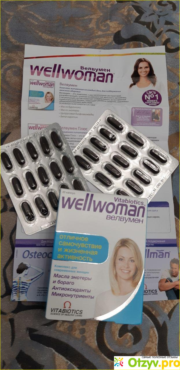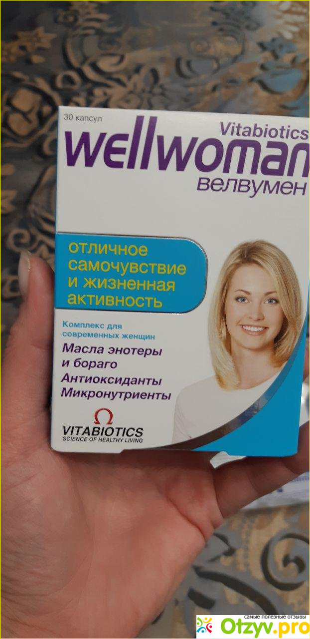 Вечерние примулы и зелёные масла включенные в Wellwoman наряду с широким спектром питательных веществ и микроэлементов для поддержки общего здоровья, которые представляют наибольшую ценность для женщин. Препарат содержит витамин B6, который способствует регуляции гормональной активности, а также железо, которое способствует нормальному образованию эритроцитов и гемоглобина, что является важным фактором во время месячного цикла. Также включает 400 мг фолиевой кислоты, которая способствует росту материнской ткани во время беременности, что важно, если вы планируете беременность или есть вероятность, что вы можете забеременеть.