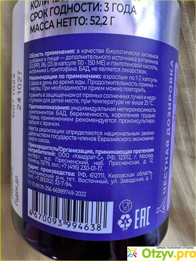 В составе хорошие дозировки витаминов В3, В6, В5, Д3
