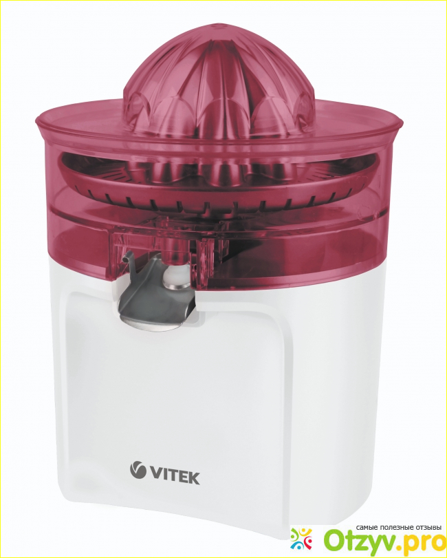 Выглядит она довольно-таки привлекательно. Небольшая по объему, очень удобно хранить, так как она не занимает много места. Сделана она из пластика, корпус прозрачный, а крышка красно-бордового цвета. Моется очень легко, я делаю это в обычным моющим средством. Предназначена соковыжималка для цитрусовых, но я иногда выжимаю сок из мягких овощей, например, из помидор. В принципе, справляется соковыжималка с этой задачей хорошо. Нигде ничего не забивается да и сок получается вкусным. Конечно, огурцы, допустим, я бы не рискнула пробивать через данный прибор со страхом, что он сломается.