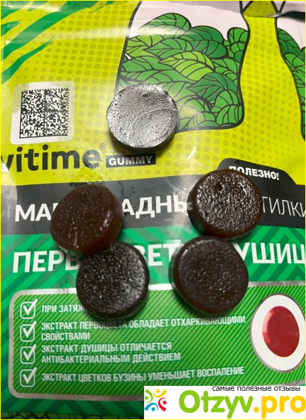 Пастилки идут в зип пакете в количестве 30 штук, стоимость около 350 рублей. В составе пастилок содержатся экстракты первоцвета, душищы, цветков и плодов бузины, плюс витамин С всем известный который является антиоксидантом и способствует укреплению иммунитета, для заболевающего человека отличный вариант по составу.