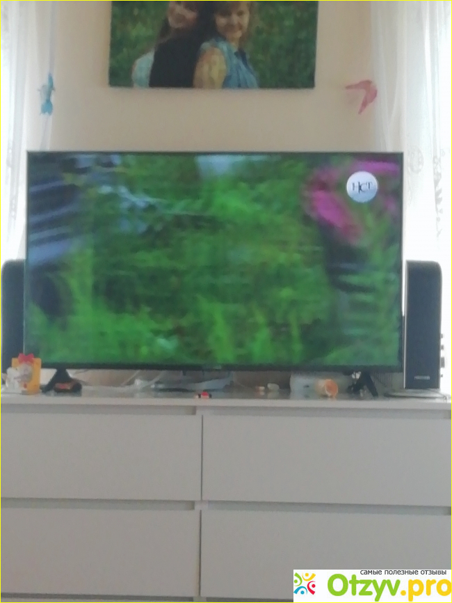 Пользуемся чуть больше года. Поддерживает как кабельное так и антенну. Есть функции просмотра фото и входа в интернет, социальные сети. Можно смотреть ютуб и платные кино. Цвета насыщенные яркие, без мигания. Глаза не устают при долгом просмотре. В комплекте идёт пульт. Есть функция защита то детей. Довольно легкий по массе. Имеет две удобные, устойчивые ножки выпирающие по бокам. Рамки тонкие что так же удобно при просмотре телевизионных передач. Очень практичен с маленькими детьми так как они любят тыкать пальцами.