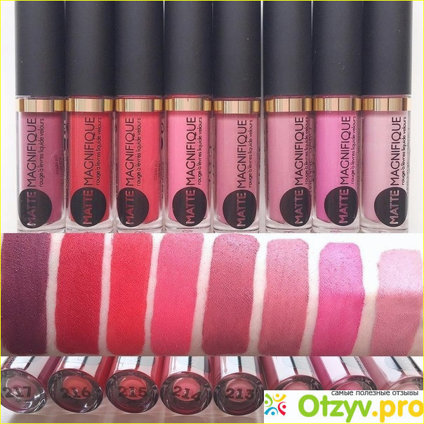 Данная же линейка губных помад под названием Matte Magnifique смогла порадовать нас целыми восьми разными оттенками цветов. Причем хочу сказать, что каждый цвет по своей интересный и насыщенный. А так как сама по себе губная помада матовая, то конечно же все цвета сочные и яркие.