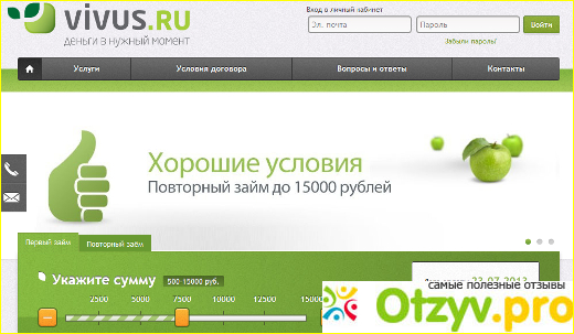 Важно, что компания Vivus.ru не требует со своих клиентов приведения поручителей и благодаря этому облегчает человеку возможность получения необходимых материальных средств.