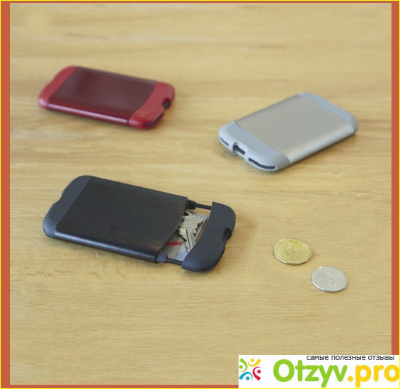 Внешний вид визитницы напоминает телефон и если не знать, то можно так и подумать. Дизайн у нее достаточно простой, но красивый и достаточно вместительный. Визитница очень удобна и легка в применении и ее легко найти будет в сумке, да и карманы она не порвет, так как края у нее округлые.