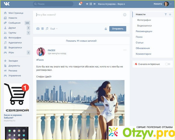 В социально сети контакт, можно найти все что тебя волнует в реальной жизни и встречается масса групп по интересам, если все их перечислять то не хватит одного отзыва. В контакте можно иметь работу и неплохо зарабатывать и просто использовать, как сеть в качестве общения с людьми, друзьями подписчиками, а также узнавать последние новости из места города, района и также страны, где проживаешь. Сидеть в данной социальной сети можно сутками и на пролет, она настолько может увлечь, что не всегда будет хорошо.