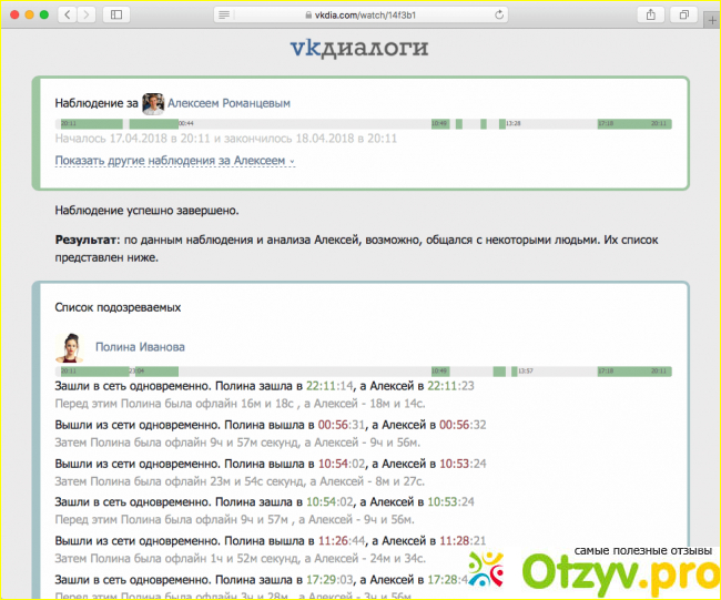 В принципе, сайт vkdia com watch дал мне понять, что с моим другом все хорошо. Никакого левого общения на стороне, по крайней мере в социальных сетях — точно нет. Тут я могу быть абсолютно спокойной, сомнений нет. Поэтому могу порекомендовать этот сервис для проверки знакомых и успокоения своей души.