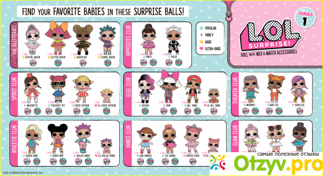 Для того, чтобы покупатели могли в полной мере познакомиться с новинками каждой серии и выбрать своих фаворитов, которых они мечтали бы получить существует бумажный вкладыш, лист, на котором изображены все девочки, входящие в этот выпуск. Они собраны по небольшим клубам, и имеют определенные характеристики. Каждая малышка имеет собственное имя и показана во всей красе.