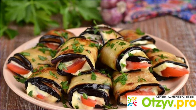 Добавьте истолчённый чеснок и немного майонеза. Выложите начинку на остывшие баклажаны, распределите и сверните красивым рулетом, начиная с узкого конца.