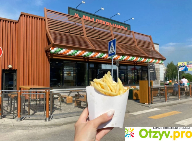 Вместо привычного Макдональдса теперь очередь стоит в наш отечественный ресторан быстрого питания. Я не пошла туда в день открытия, хоть у нас в городе и зазывали — шарики, музыка, все дела. Я сходила позже, когда ажиотаж улегся.