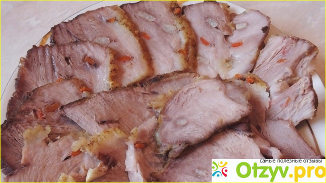 Теперь готовую буженину можно развернуть, освободить от шпагата и нарезать, как ветчину. Вкус замечательный, а мясо без добавок и консервантов.