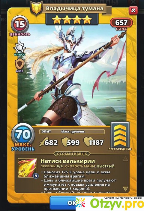 В третьем сезоне «Empires and Puzzles» появились хорошие герои на 4 звезды. Владычица тумана одна из них. Это жёлтая четвёрка, с сильным уроном по трём вражеским героям, которые стоят рядом.