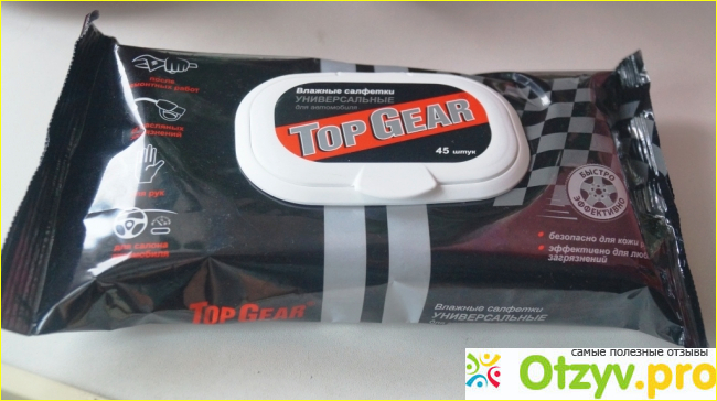 Недавно в магазине «Ашан» нашего города я наткнулся на интересные влажные салфетки под названием: «Влажные салфетки Универсальные для автомобиля Top Gear». Так как я являюсь автомобилистом, то они меня сильно заинтересовали, и, конечно же, я их купил. Стоили они недорого, за упаковку, содержащую 45 влажных салфеток я заплатил 49 рублей.