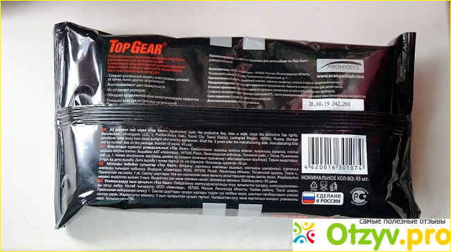 Я думаю, что всем известна эта популярная зарубежная телепередача, где ведущие рассказывают нам все об автомобилях. Но не думайте, что эти салфетки оттуда, это просто такой рекламный ход. На самом деле эти салфетки выпускает наша страна Россия, ООО «Авангард», Ленинградская область, г. Тосно. Кстати, в их ассортименте имеются и другие салфетки, такие как салфетки для очистки рук с антибактериальным эффектом, салфетки для стекол, зеркал и фар автомобиля, салфетки для ухода за интерьером автомобиля и т. д.