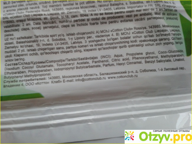 Но по крайней мере там нет парабенов, которые могут активно использовать в производстве других влажных салфеток.