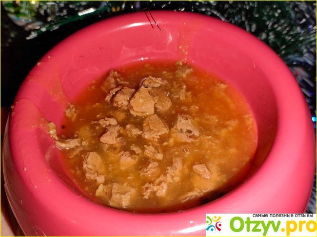 По консистенции угощение жидкое. Мне показалось вообще, что только жидкость. Но кусочки есть.