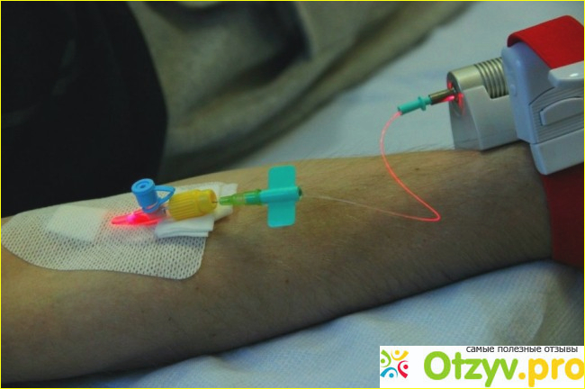 Для прохождения данной процедуры госпитализация не требуется. Используется лазерный аппарат, который генерирует излучение красного и синего спектра. Пациент должен быть спокоен, все показатели (АД, ЧСС, температура тела) в пределах нормы. Вену пациента вводится одноразовая игла с проводником, который соединен с лазерным аппаратом. Время воздействия устанавливают на приборе: красный спектр должен действовать не менее 30 минут, для волны синего спектра достаточно 7 минут.
