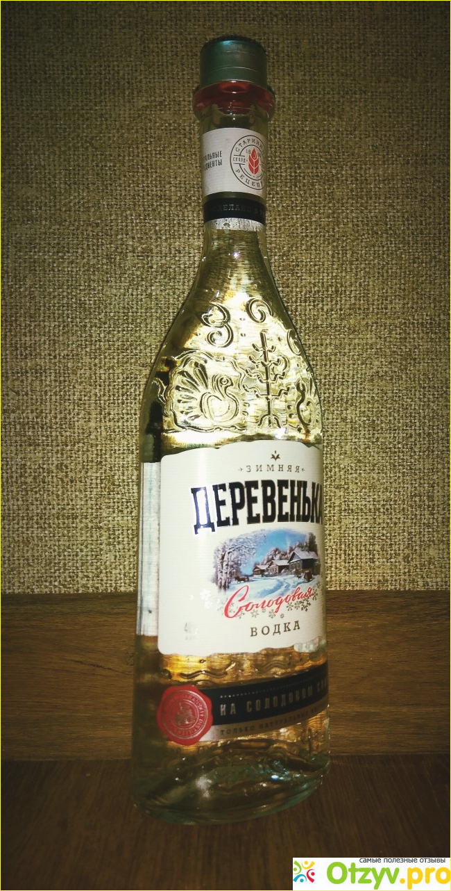 Водка-«Деревенька зимняя» это простая Саранская водка приготовленная из воды добываемой из собственной (артезианской) скважины и собственно-рощенного солода. Спирт солодовый «Альфа» без каких-то специальных добавок.