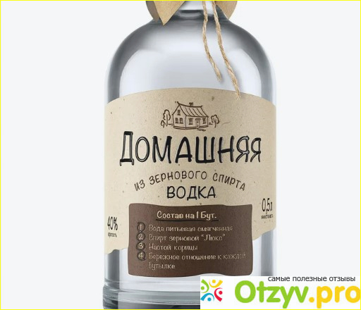 Этикетки выполнены на простой шершавой бумаге будто газетная, в серых тонах. Ёмкость бутылки составляет пол литра. На лицевой этикетке красуется простое изображение домика в деревне с незамысловатой надписью — домашняя водка из зернового спирта. Тут же можно узнать состав, из питьевой смягченные воды, зернового спирта класса "люкс" и настоя корицы. Ещё указывается о бережном отношении к каждой бутылке, хотя какое имеет отношение это к самому составу непонятно. Передняя и задняя этикетки наклеены ровно, без перекосов. Также имеется акцизная марка.