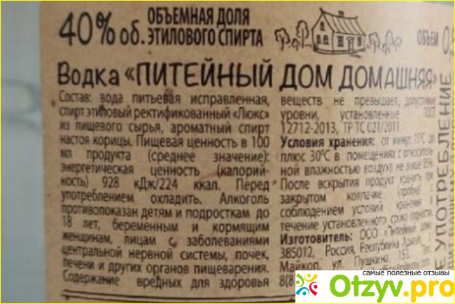 На обратной стороне можно прочитать более подробно состав, узнать пищевую ценность, противопоказания по алкоголю, условия хранения, подробный адрес изготовителя, дату производства и так далее.