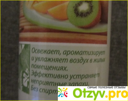 Прельстили и обещания производителя, касающиеся приятного состава этого средства очищения воздуха: спрей- освежитель изготовлен на водной основе и не содержит спирта.