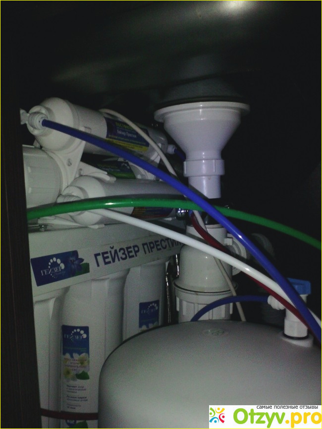 Система обратного осмоса подразумевает продавливание воды через очень тонкий фильтр ( около 1 микрона ) через который не проходят микробы. Я думал, что будет какой то насос, придется тянуть электричество, но видимо давления в водопроводе хватает - никаких проводов не нужно.