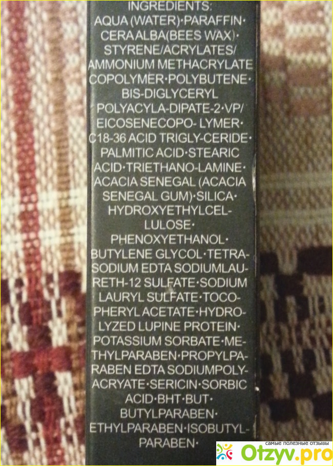 Состав описан честно и для туши он достаточно хорош, хотя есть здесь и парабены: