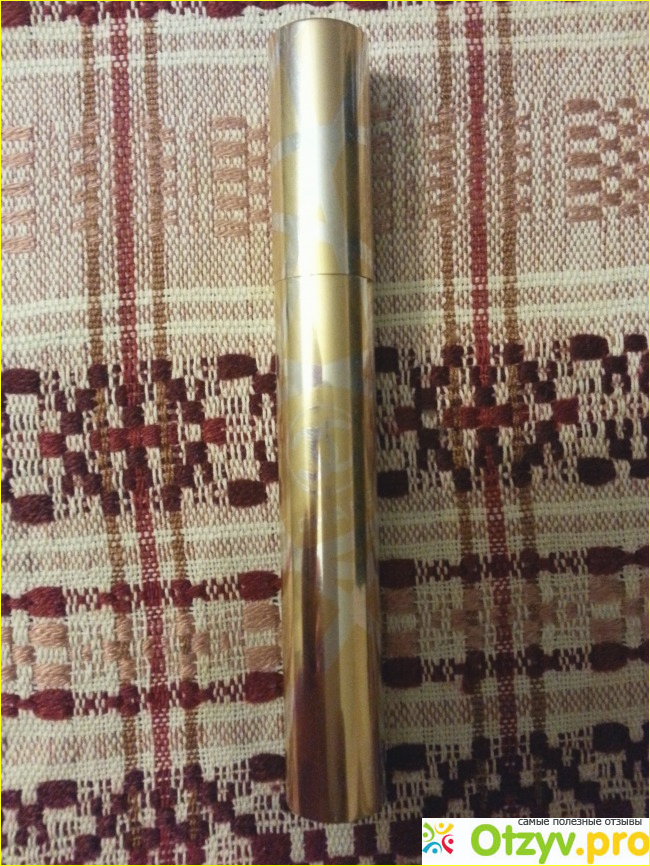 Сама тушь - в красивом золотистом корпусе. Очень, кстати, этот корпус удобный - если испачкать тушью, все пятнышки видно лучше, чем в черном. Вытерла тут же, и косметичка не испачкается.