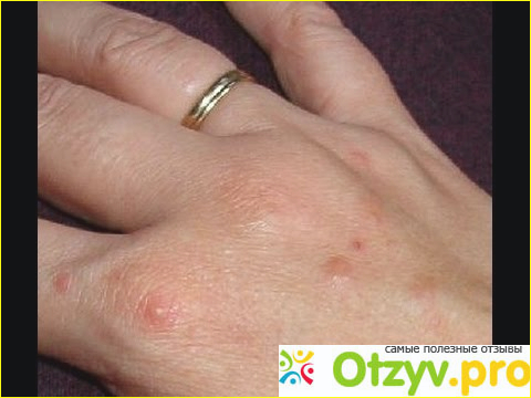 Проявления в данном случае могут быть самыми разными. Всё зависит от особенности индивидуальной чувствительности на конкретный препарат. Сыпь пузырьками может носить локальный характер, а может распространиться по всему телу. При этом пациент может ощущать себя достаточно хорошо, однако возможна ситуация, когда самочувствие значительно ухудшится, поднимется температура и может даже понадобится госпитализация в лечебное учреждения.