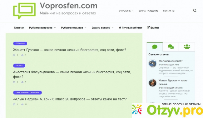 На главной странице мы видим вопросы на которые можно давать платные ответы. О том как это работает поговорим ниже. Также на сайте имеются отзывы. Вообще если заглянуть в рубрики, можно увидеть, что их довольно много.