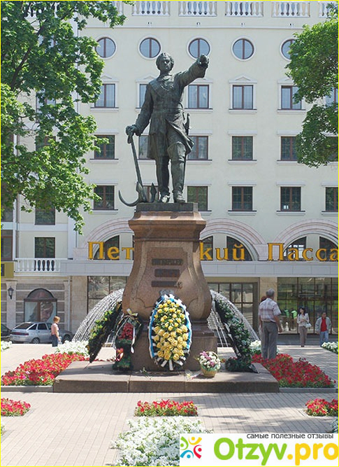 Этот памятник имеет свою драматическую историю, в тысяча восемьсот шестидесятом году он был установлен в городе в честь Петра Великого и отлит он был из бронзы. Во время оккупации, фашисты переплавили этот памятник(не устаю удивляться , насколько мерзкими были эти нелюди, надеюсь, горят в аду!). И снова памятник увидел свет в тысяча девятьсот пятьдесят шестом году. Ну а в две тысяча девятом, как и было сказано выше, этот памятник стал символом города.