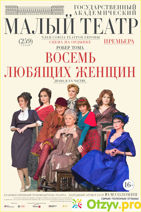 Недавно мне посчастливилось попасть на спектакль "Восемь любящих женщин" в Малом театре на Большой Ордынке. Это постановка от французского драматурга Робера Тома. С его работами я знакома уже давно и мне очень нравится, как он сочетает в своих произведениях детектив, драму и комедию.