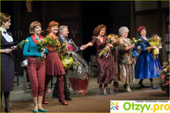 Как понятно из названия, в постановке участвуют одни женщины. Одну из главных ролей исполняет моя любимая актриса Ирина Муравьева. Я ее очень люблю, она потрясающе сыграла в кинофильмах "Карнавал", "Эта женщина в окне", "Москва слезам не верит". В спектакле Ирина Муравьева играла бабушку и ее выход на сцену встретили оглушительными овациями.