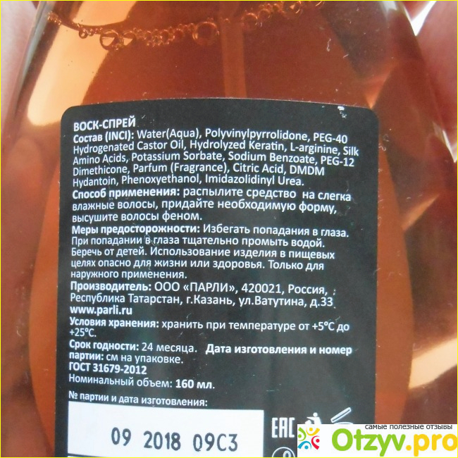 Необходимо распылить спрей-воск на слегка подсушенные, но еще влажные волосы, а затем уложить их. Я пробовала делать это феном и электрической расческой. В обоих случаях прическа приобретает объем, она держится несколько дней, при этом волосы выглядят чистыми, блестящими, гладкими и шелковистыми. Вероятно, это заслуга кератинов и протеинов шелка, входящих в состав этого средства. Наверное, есть еще какой-то секрет, но потребителям знать его не обязательно. Главное - спрей-воск корейской косметической серии Seondo имеет высокое качество при доступной цене.