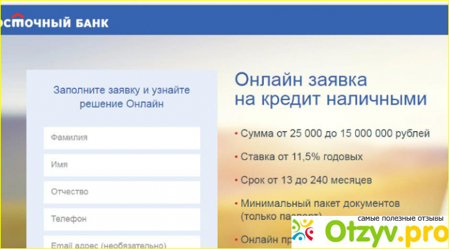 В последнее время мне стало поступать всё больше предложений о кредитовании в разных банках. К примеру, ОТП готов дать семьдесят тысяч сразу, как я притащусь в их отделение и принесу с собой паспорт. Но, меня больше заинтересовало предложение банка «восточный».