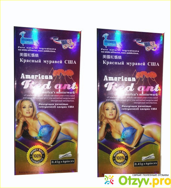 Очень хороший женский возбудитель с названием American Red Ant. Его бывает очень трудно найти в аптеках и даже в интернет аптеках, но всё же можно его заказать и приобрести. Его очень хорошо разбирают, так как он действительно очень эффективно помогает женскому полу побороть недуги, как фригидность и разные другие расстройства в половой функции. Этот препарат решает проблемы, такие как сухость влагалища, либо очень долгая возбуждаемость и даже, когда женщина не может слишком долгое время возбудиться. И вследствие этого не получает полноценно оргазм, или вообще он отсутствует, поэтому данные таблетки очень хорошо справляются со всеми такими проблемами, и дают женщины стабильные сексуальные отношения со своим партнёром. Также очень хорошо они убирают проблему как сухость в половом органе, это всё происходит, когда недостаточно смазки. Эти таблетки очень хорошо борются с таким недугом как слабые и рыхлые мышцы стенок влагалища. Так что данный препарат очень эффективно влияет на женщину возвращая ей всю радость от интимных отношений.