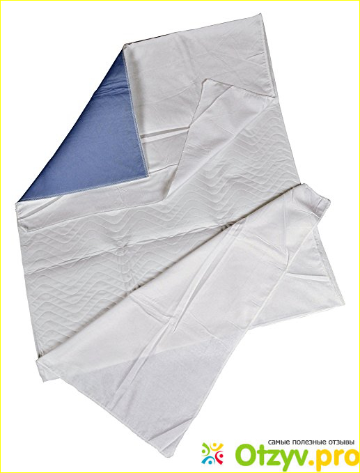 Это изделие может впитывать до 2-х литров жидкости. Лежачего больного даже мыть можно на ней. Ткань похожа на фланель, только более плотная. Она не скользит и не собирается складками под больным. Верхняя ее сторона -вискоза. К рабочей, непромокающей зоне(75х80) пришиты крылья-лямки длиной 50 см.. Их я отрезала, мне они не нужны.