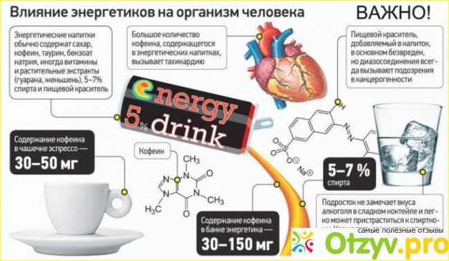 Также вы существенный урон можете нанести вашему желудку и печени, вот как раз у меня такая проблема и была. Дело в том, что моя работа очень тесно связана с компьютером, поэтому мне очень много времени приходиться проводить за ним, и ночью и днем, я быстро устаю и работоспособность конечно же со временем начинает падать. И вот я решил в одно время, что можно попробовать энергетические напитки и в конечном итоге подсел на них очень серьезно. Во время до меня донесли информацию мои родители и даже дали по шее как положено. После чего я каждый день пью только лишь кофе или бодрый чай и признаться честно, это намного эффективнее, а самое главное безопаснее для нашего здоровья.