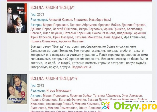 Многие люди вечером после тяжелого будничного дня хотят раслабится и сесть на диванчике посмотреть по телевизору что-нибудь интересное. Можно посмотреть что угодно, но порой хочется чего-то необычного, так сказать семейного. И сериал Всегда говори всегда отлично подойдет.