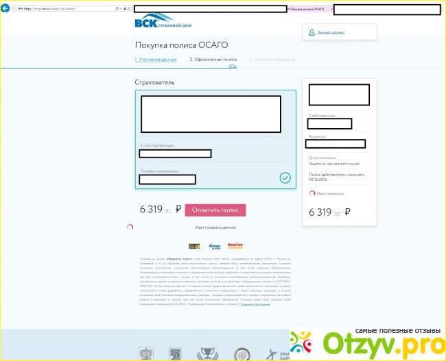 Процесс покупки полиса на сайте компании занял у меня буквально 20 минут. Ввел все свои данные и загрузил фотографию диагностической карты, проверка данных заняла несколько минут. Оплатил страховку по карте, через он-лайн банк. Ожидание длилось не долг, буквально минут через 30 мне уже прислали готовый полис. Все быстро и понятно.